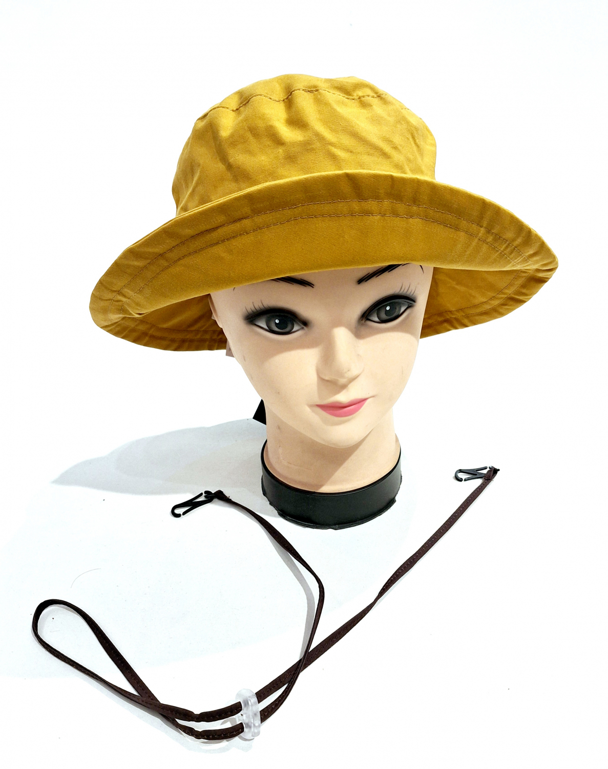 Chapeau de pluie en tissu 100% coton mâte uni moutarde/ocre.