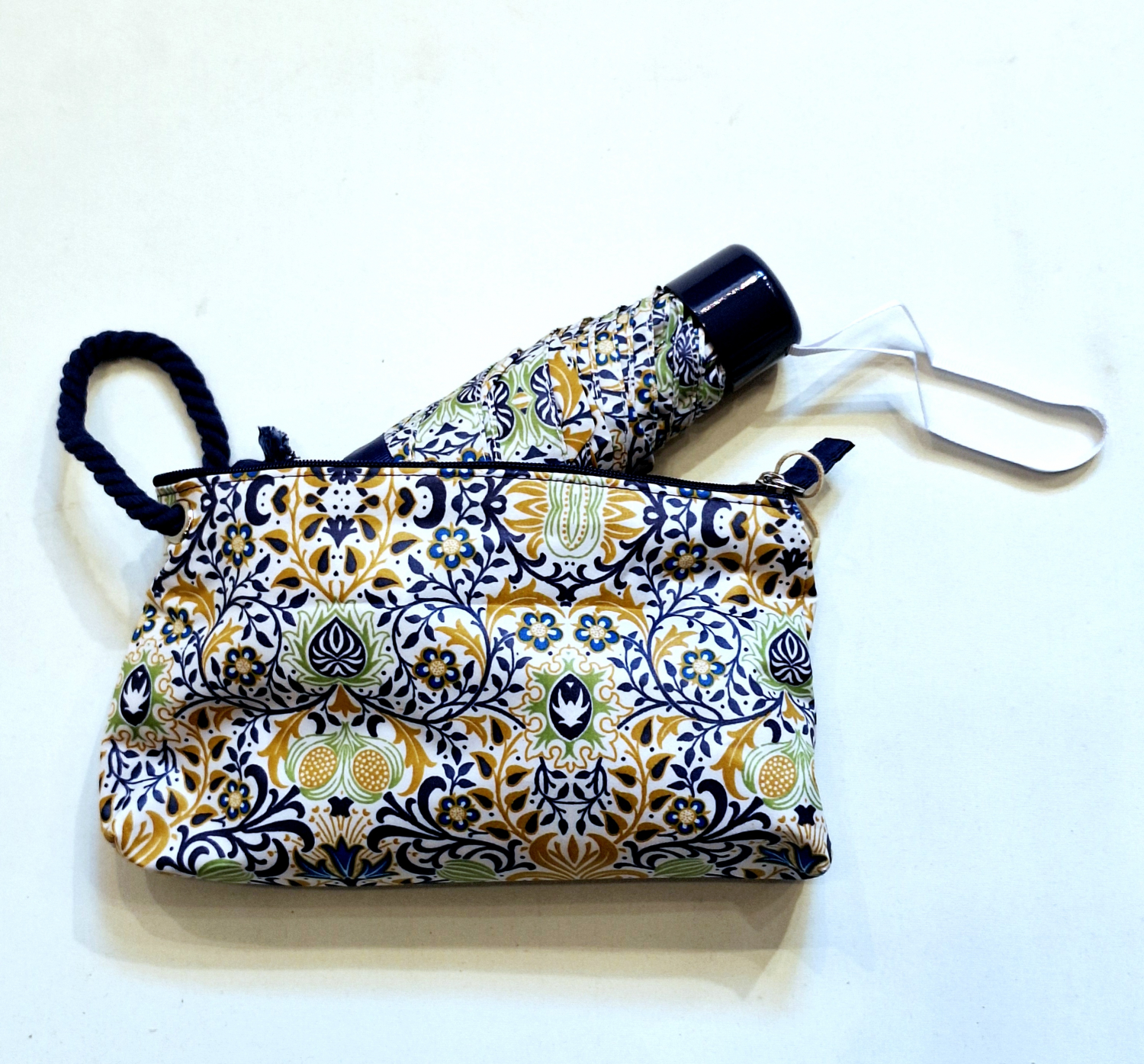 Parapluie de poche pliant mini trousse imperméable bleu / jaune imprimé arabesque Ezpeleta - Résistant & léger