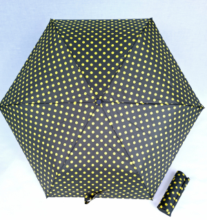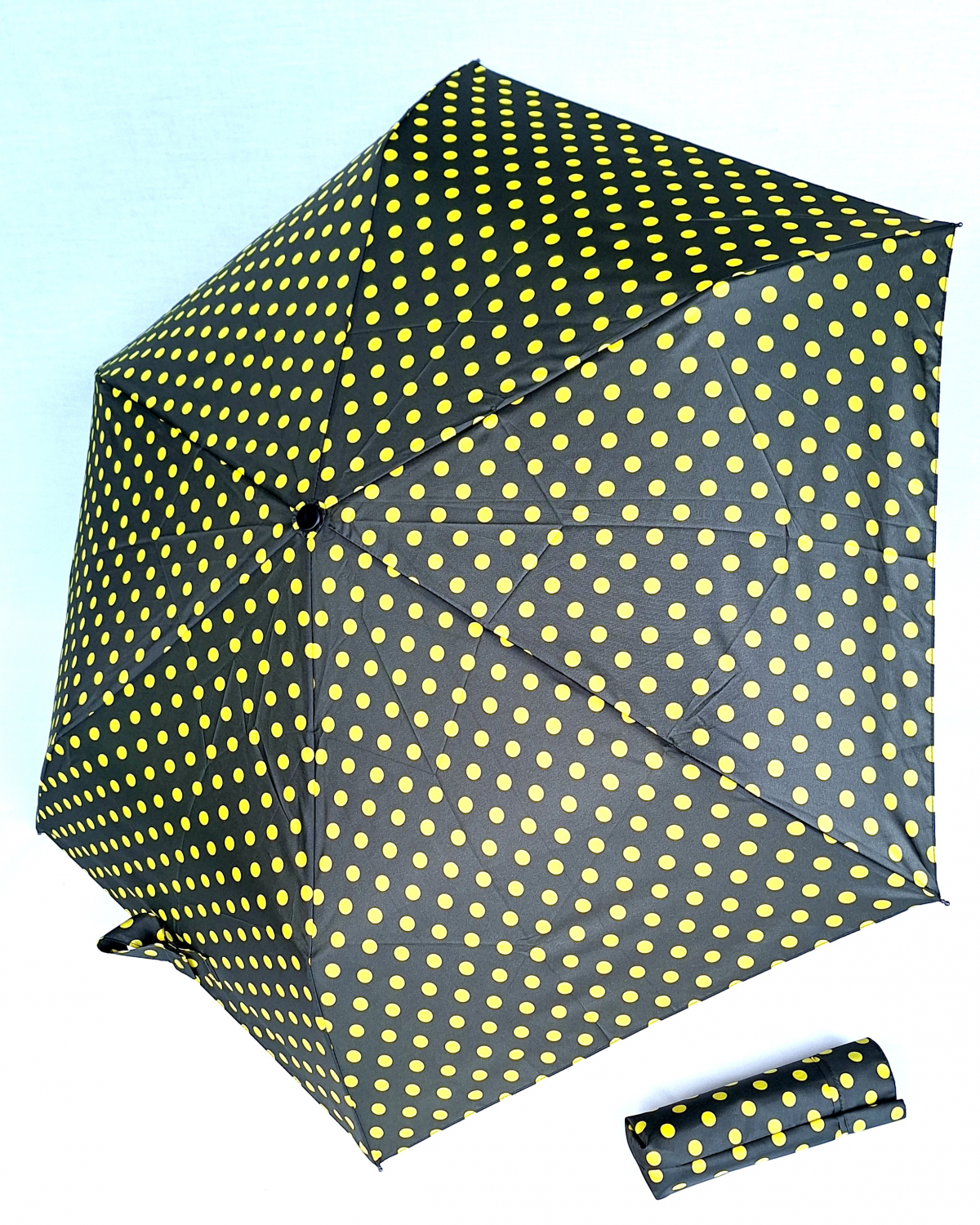 Parapluie petit pliant Ultra léger manuel chocolat imprimé pois jaune Doppler - Solide & pas cher